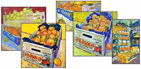 J’ai trouvé mes premiers modèles entre deux poubelles. Un mot m’avait frappé : Filosofo. Que pouvait-il y avoir de philosophique à consommer de la « navelina » ? A coup sûr, les cageots et leurs impressions jouaient la dérision !